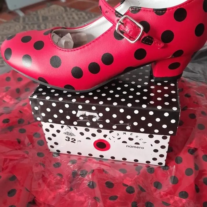 Shopping in Denia recently I fell in love with a child's sized flamenco dress, so I bought one with matching red and black polka dot shoes! For my granddaughter's fifth birthday.