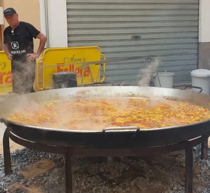 Later in the afternoon they have a paella cook off, huge pans are placed on piles of hot coals, out on the streets, then parties spill out onto the streets late into the night.