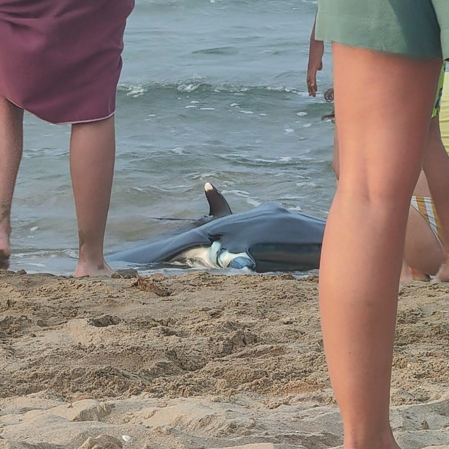 After many failed attempts by the brave men to help guide it out to deeper waters, eventually the large sea creature came into the shallows.