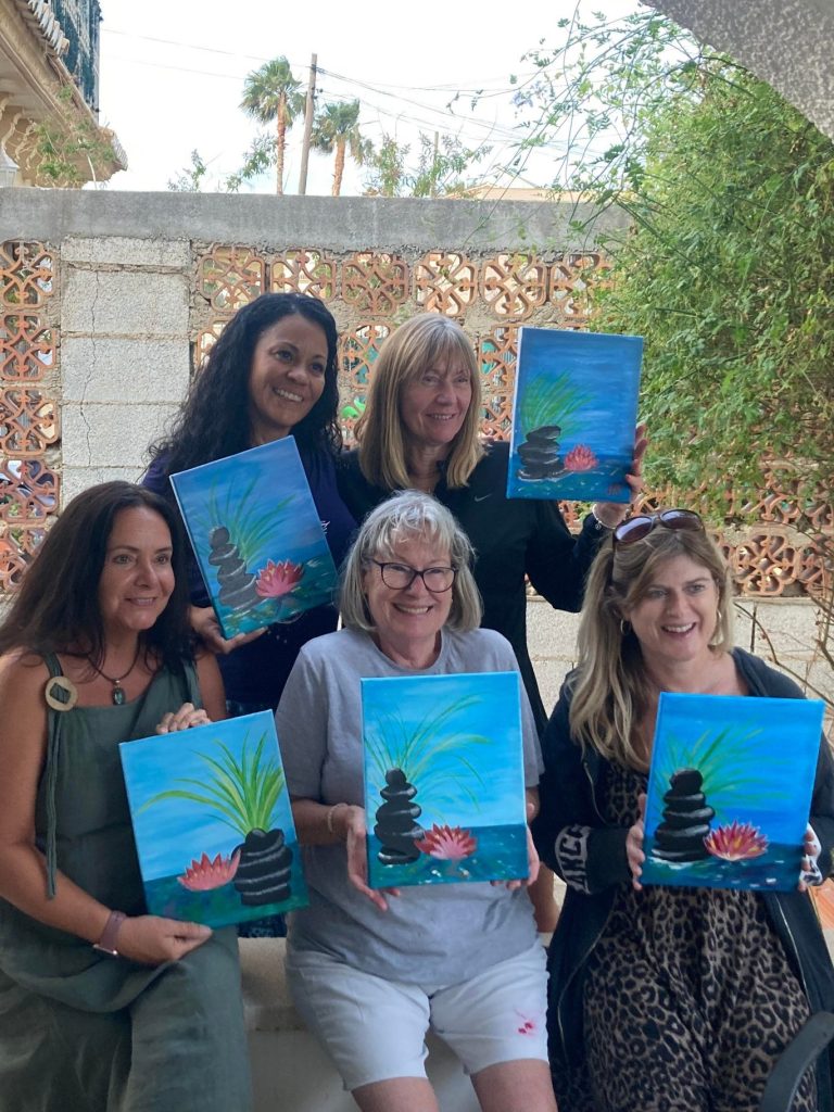 Earlier this week, my American friend invited us ladies from the yoga class to her home, where she led a painting class in her garden.